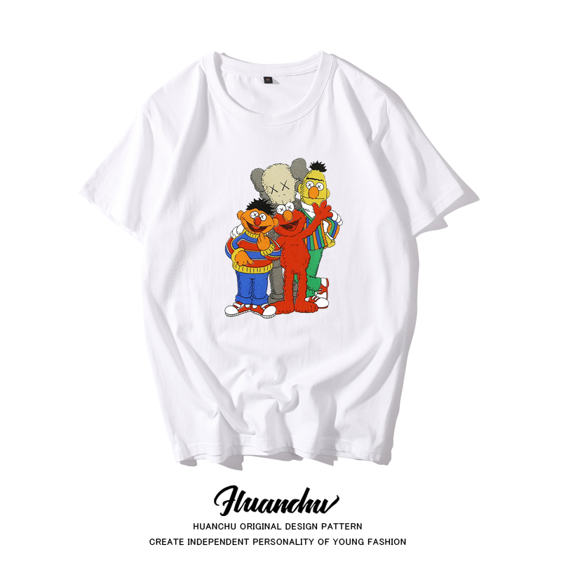 欢楚芝麻街t恤kaws x 芝麻街短袖t恤女芝麻街半袖宽松周杰伦同款