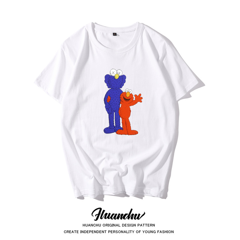 欢楚芝麻街t恤kaws x 芝麻街短袖t恤女芝麻街半袖宽松周杰伦同款